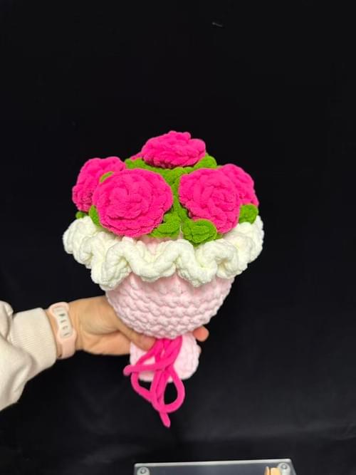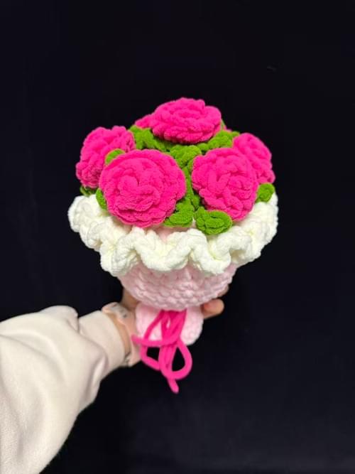bouquet tricotee rose fushia
