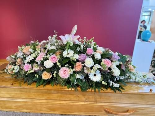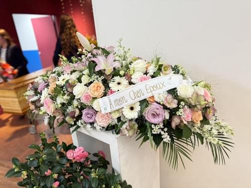 Raquette funéraire. Vous êtes à la recherche d’un présent floral mémorable pour réconforter vos proches endeuillés le jour de la cérémonie ? Notre gamme Deuil se compose d’un ensemble de raquettes funéraires, aux teintes et aux dimensions variables. Toutes, à l’image d’Hommage éternel, seront des créations uniques réalisées le jour J par un artisan fleuriste qui sélectionnera les plus belles et les plus fraîches variétés de fleurs de saison. Dans une palette de rose aux multiples nuances, Hommage éternel est essentiellement confectionné à partir de lys, roses branchues et mufliers.
