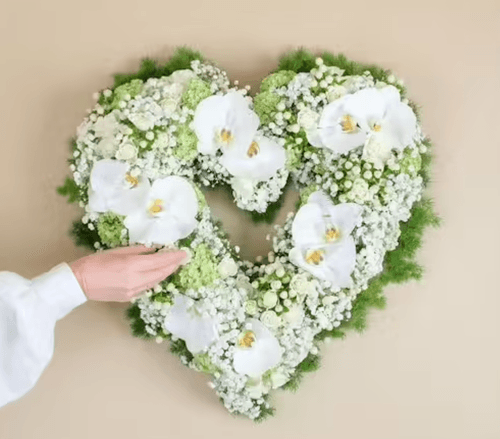 Notre cœur funéraire immaculé Souffle d'émotion est une création florale d’exception.